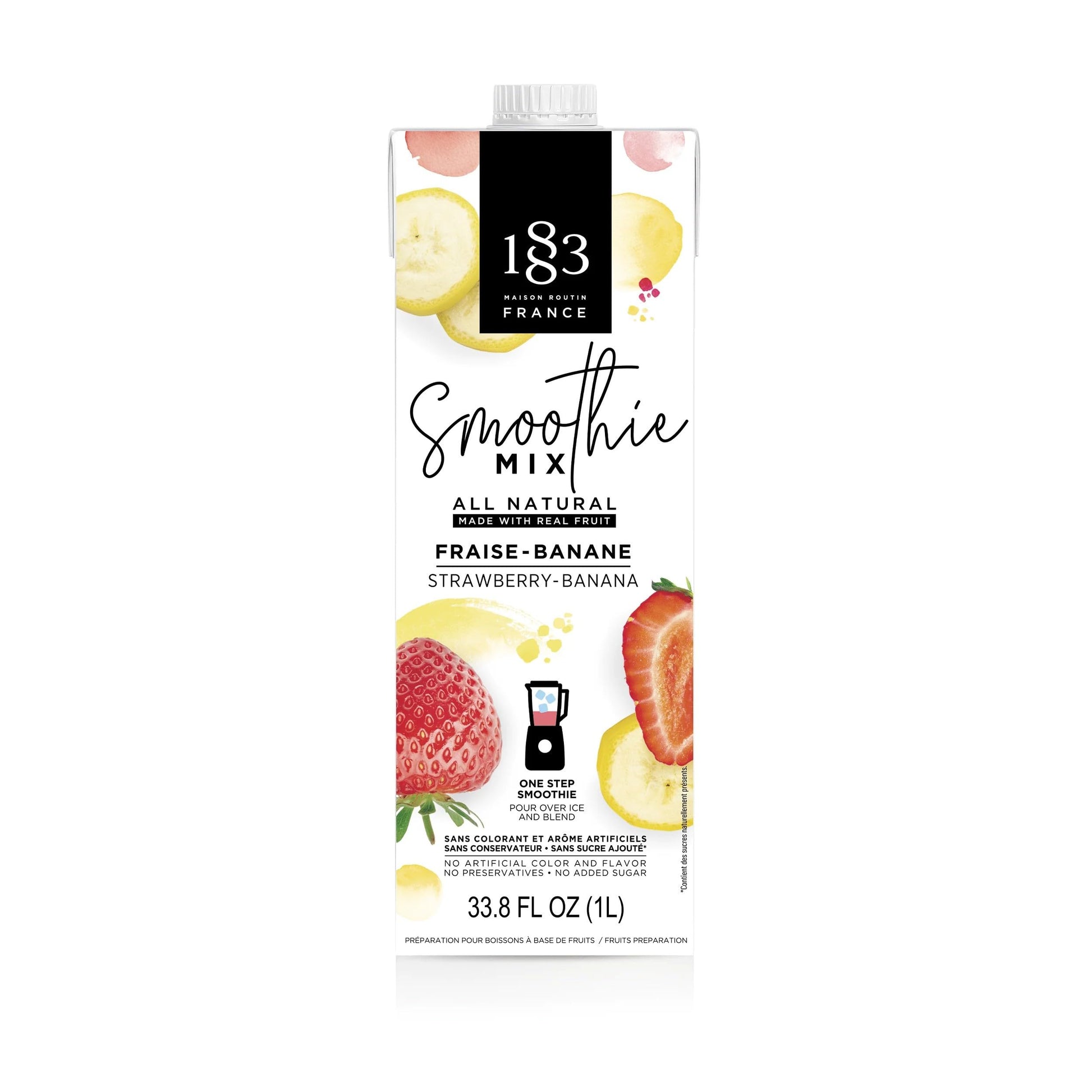 1883 Strawberry Banana Smoothie Mix | Aseptic Carton 1 Liter 33.8 Fluid Ounces