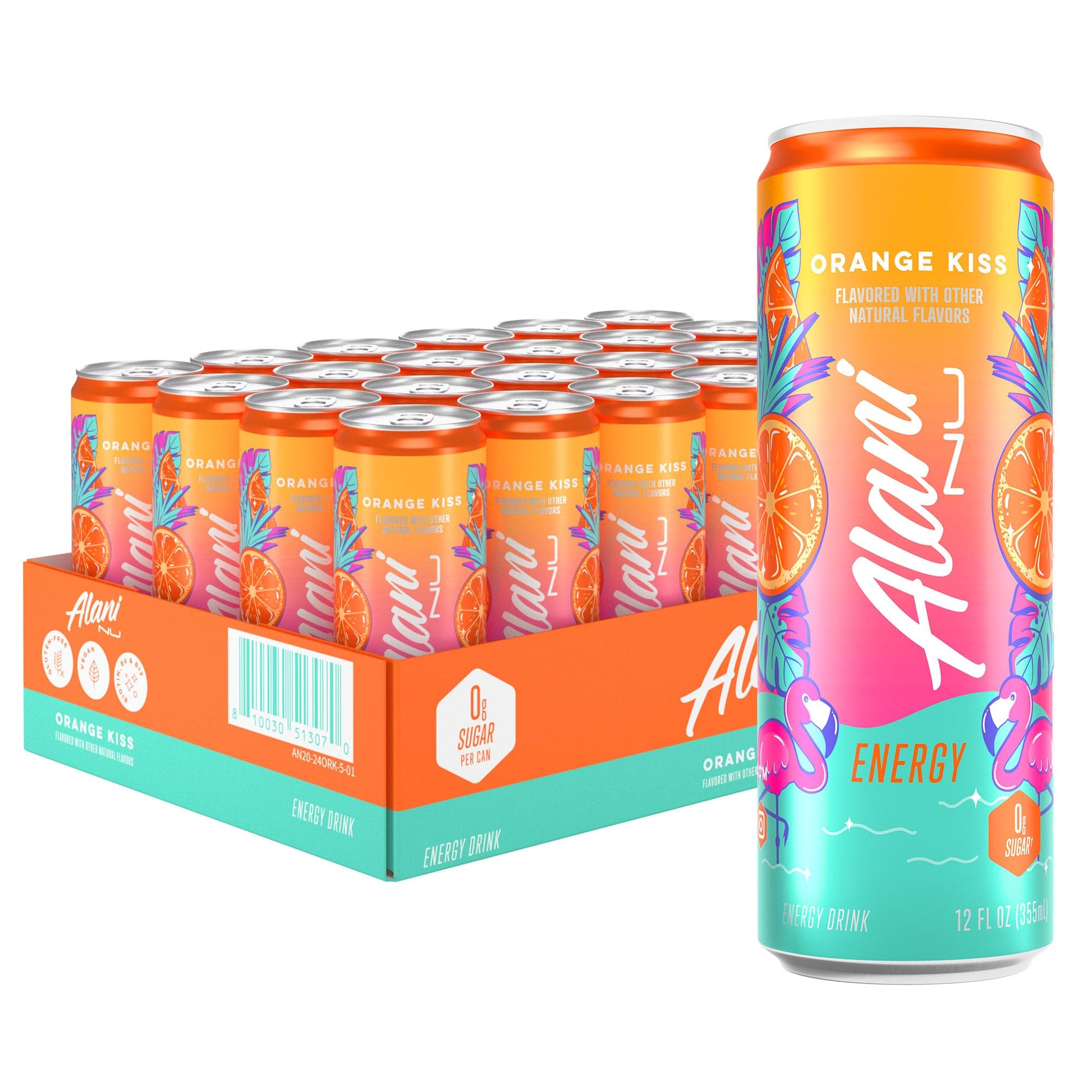 Alani Nu ORANGE KISS Ice Sugar Free, Low Calorie Energy Drinks | 200mg Caffeine | Antioxidants | Biotin, B Vitamins | Zero Sugar | 15 Calories or Less | 12 Oz Cans | 24 Count